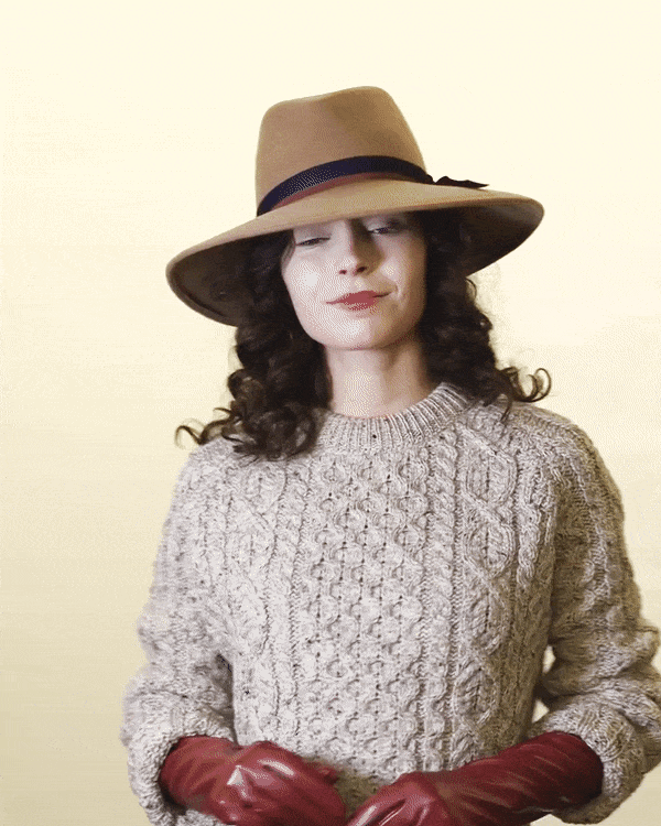 The Pirk is a wool felt fedora with a slightly downward brim. Narrow ribbons in contrasting colors are tied casually around the crown for an ever-so-slight flourish.