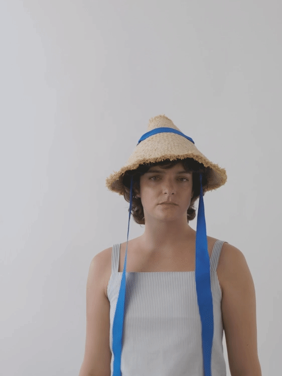 Inspired by a vintage find, this raffia visor/hat is an ideal traveling companion. Unsnap the back and it will lay it flat, or roll it up for easy packing. A ribbon slipped through eyelets keeps it securely in place. Tie the bow near your ear you’ll acquire immediate ’50s glamour!