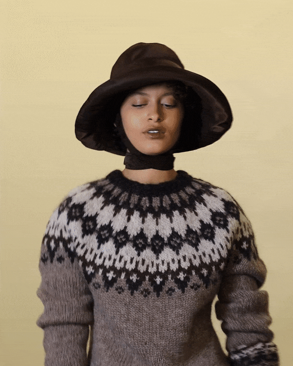 This water-repellent bucket, made of a 100% nylon fabric traditionally used for flight jackets, has a flip-up edge to keep rain off the face. Lined with sateen cotton.